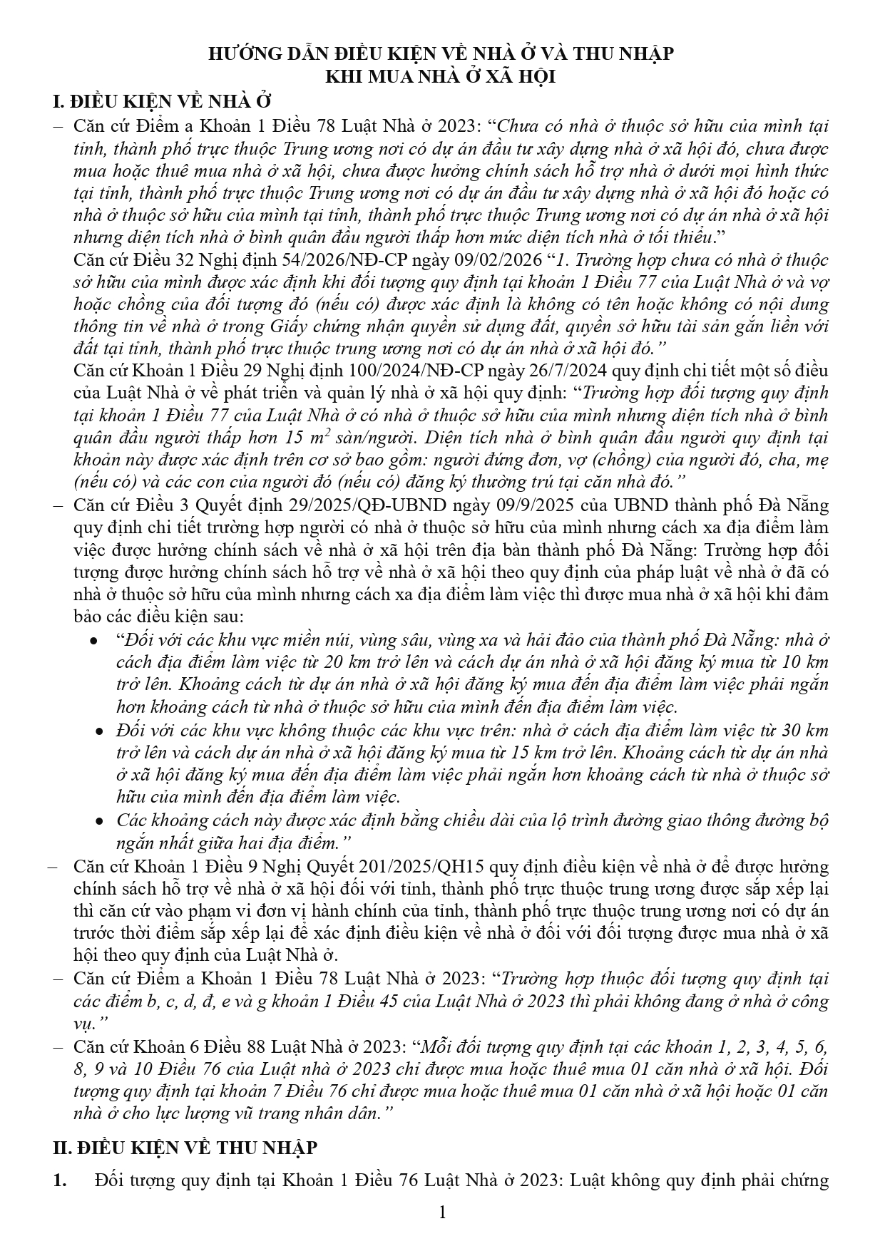 Hướng dẫn Điều kiện về Nhà ở và Thu nhập khi mua Nhà ở Xã hội