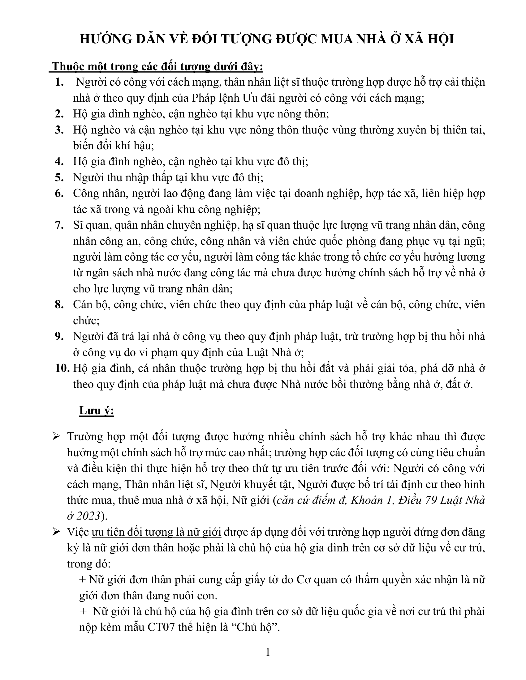 Hướng dẫn đối tượng được mua Nhà ở Xã hội