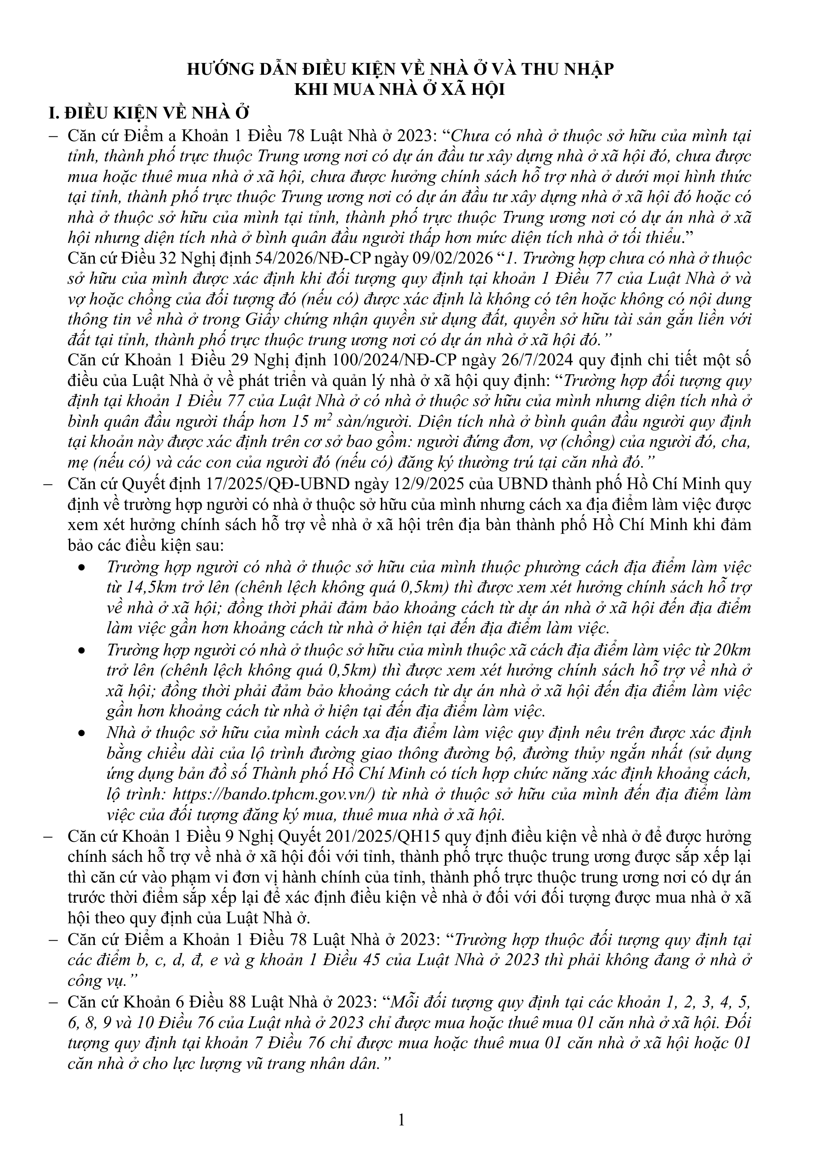 Hướng dẫn Điều kiện về Nhà ở và Thu nhập khi mua Nhà ở Xã hội